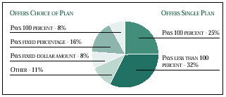 Percent of Employees by Contribution Policy of Companies Offering a Choice of Plans